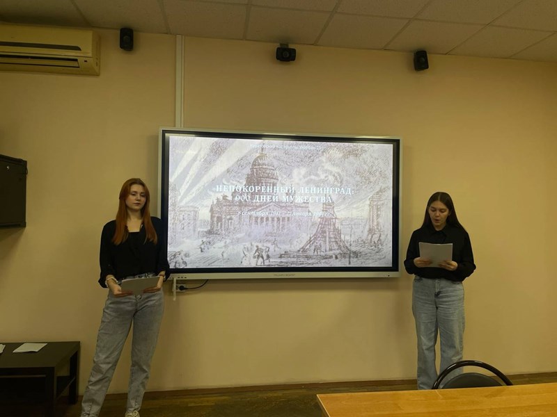 Для разработки цикла кураторских часов кураторы привлекли студентов. Одной из ярких встреч стало выступление третьекурсниц Ирины Маковецкой и Дарьи Лившиной направления «Управление в креативных индустриях». Они показали одногруппникам фильм о дневнике Тани Савичевой, рассказали о голоде в блокадном Ленинграде, транспортной магистрали «Дорога жизни» и о героизме жителей города.