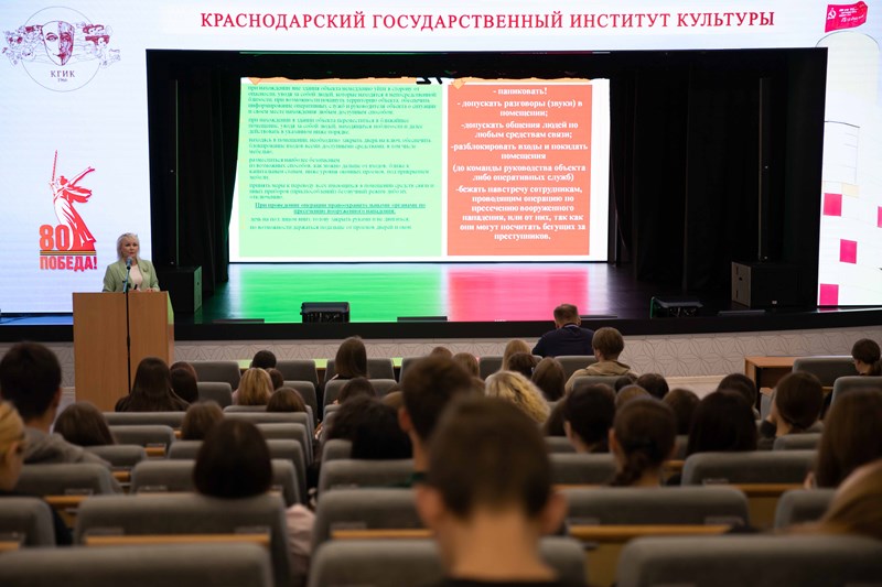 В Краснодарском государственном институте культуры проходит неделя собраний со студентами первых курсов и преподавателями вуза и колледжа, посвященная мерам противодействия и профилактики экстремизма и терроризма в молодежной среде.