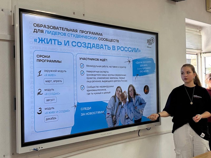 Координаторы проекта «Твой Ход» в Краснодарском государственном институте культуры Полина Иноземцева и Дарья Лапина с 22 по 25 сентября провели презентации для всех первокурсников. Они познакомили студентов с проектом как участники флагманской программы «Жить и создавать в России». Студентки делились опытом участия в конкурсных треках и вдохновляли на первые шаги в студенческой жизни.