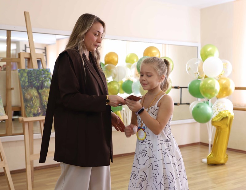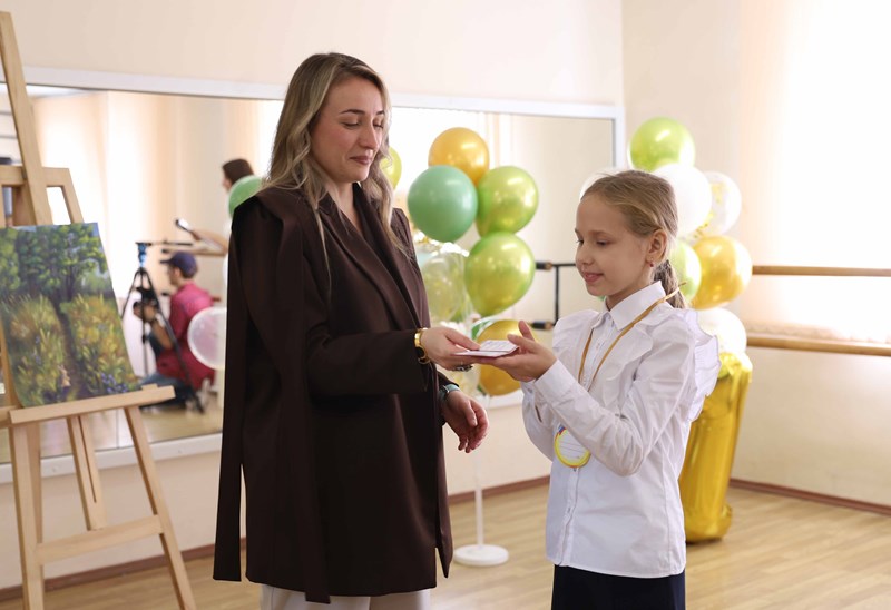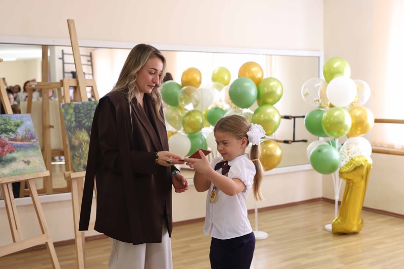 Заведующая отделением детских студий и предпрофессионального образования КГИК Анастасия Ситалова вручила будущим музыкантам, художникам и хореографам ученические билеты и поздравила ребят с началом непростого, но увлекательного творческого пути.