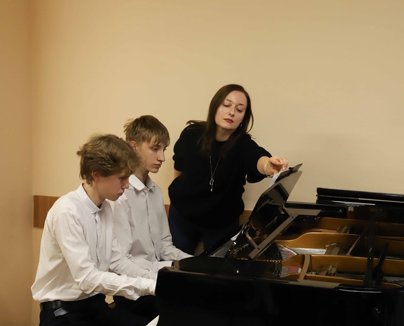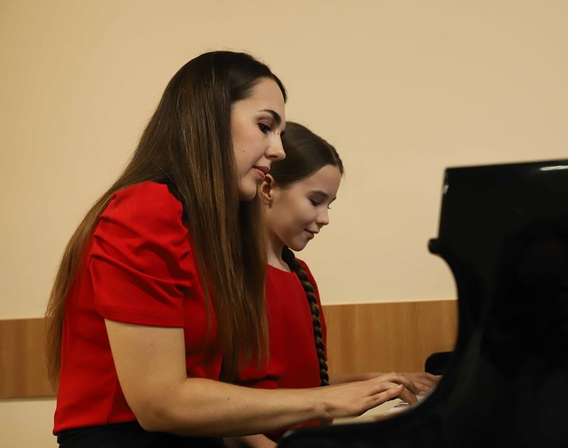 Ребята, обучающиеся на направлении «Фортепиано», подготовили разнообразную концертную программу и выступили перед своими родителями. Открыл концерт сводный хор воспитанников ДШИ КГИК. Юные музыканты выступали сольно и в составе дуэтов. Одним из таких дуэтов стал семейный тандем мамы и дочери: Ирина и Мария Калиниченко выступили вместе. Мария обучается в классе преподавателя Анны Тихой.