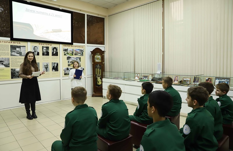 Студенты кафедры информационно-библиотечной деятельности и документоведения КГИК обсудили с кадетами известные художественные произведения и их главных героев. Особое внимание ребята уделили тем личностным качествам персонажей, которые служат примерами для подражания. Со студентами юные музыканты обсудили важность чтения и роль книги в жизни человека.