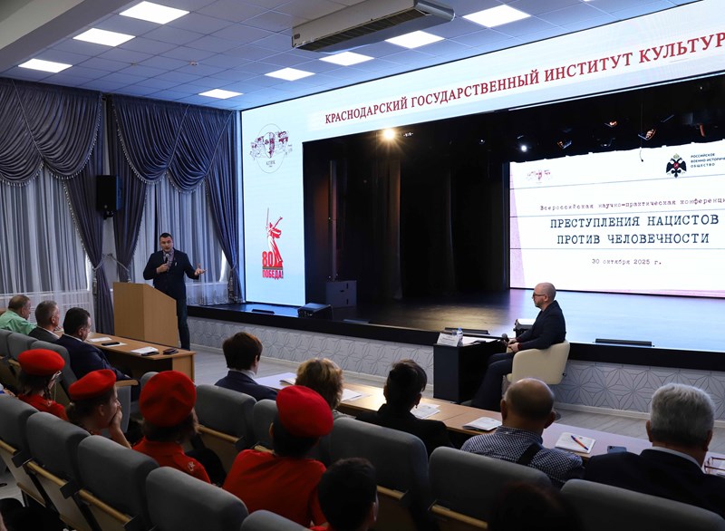 В Краснодарском государственном институте культуры прошла Всероссийская научно-практическая конференция “Преступления нацистов против человечности”, в которой приняли участие преподаватели и студенты КГИК, представители образовательных учреждений, музеев, профильных ведомств и служб Российской Федерации и Республики Беларусь.
