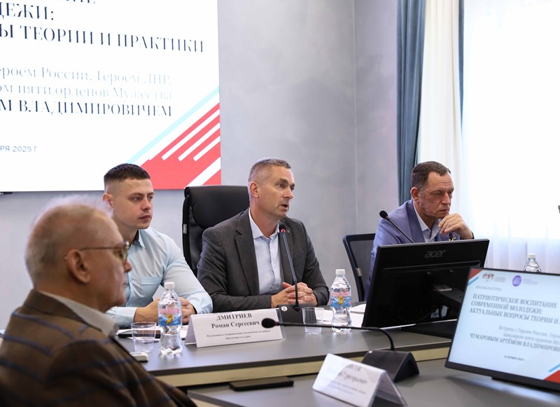 На встрече выступил руководитель департамента молодежной политики Краснодарского края Роман Дмитриев, отметивший важность профессиональных компетенций специалистов, ответственных за патриотическое воспитание и особо значимую роль КГИК, ставшего авангардом в вопросах сохранении исторической памяти и просветительской миссии для молодежи нашего региона.