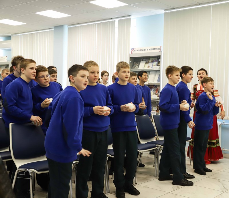 Студенты кафедры сольного и хорового народного пения КГИК выступили перед учащимися отделения детских студий и предпрофессионального образования КГИК и Музыкального кадетского корпуса имени Александра Невского. В ходе игровой программы ребята познакомились с традициями и обычаями празднования Святок, узнали об истории праздника и приняли участие в обрядах и традиционных играх. Насыщенная программа включала в себя песни, щедровки и колядки, вертепное представление, зрители и артисты сыграли в импровизированные снежки, посевали и даже водили "козу".
