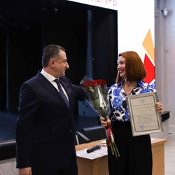 Помимо этого в рамках собрания ректор вручил ряд наград сотрудникам института. Так доцент кафедры педагогики, русского языка и гуманитарных дисциплин КГИК Андрей Подлеснов награжден Почетной грамотой Министерства культуры Российской Федерации за большой вклад в развитие культуры и многолетнюю плодотворную работу. Также руководитель пресс-службы КГИК, преподаватель кафедры педагогики, русского языка и гуманитарных дисциплин Наталья Созонова удостоена Благодарности Министра культуры Российской Федерации.