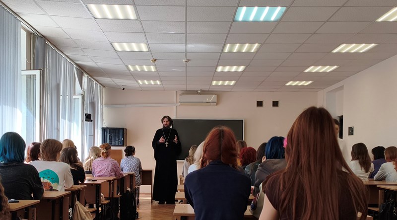 В Краснодарском государственном институте культуры священник храма апостола Андрея Первозванного иерей Евгений рассказал обучающимся отделения среднего профессионального образования о важности создания крепкой и дружной семьи. Как отметил гость, главной базой для создания брака являются традиционные ценности, которые разделяют супруги. Любовь, взаимопонимание и принятие способны духовно укрепить и сохранить отношения.