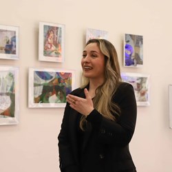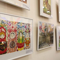 Выставка стала не просто демонстрацией таланта и умений юных художников. В работах прослеживаются как знакомые всем образы и символы Родины, такие как русская березка и традиционный костюм,так и попытки художественного осмысления истории России: встреча прошлого с будущим на улицах родного города.