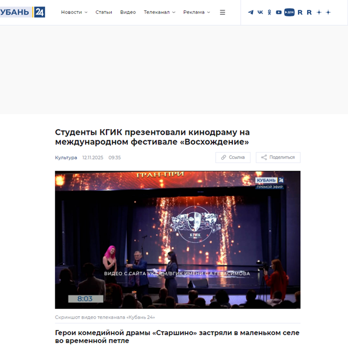 Кубань 24: "Студенты КГИК презентовали кинодраму на международном фестивале «Восхождение»"