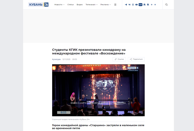 Кубань 24: "Студенты КГИК презентовали кинодраму на международном фестивале «Восхождение»"