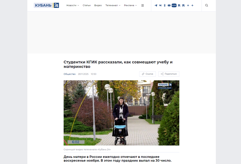 Кубань 24: "Студентки КГИК рассказали, как совмещают учебу и материнство"