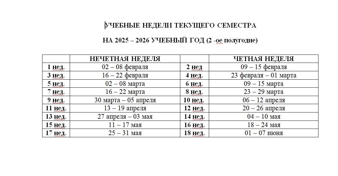 | Нечетные недели | Четные недели |