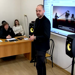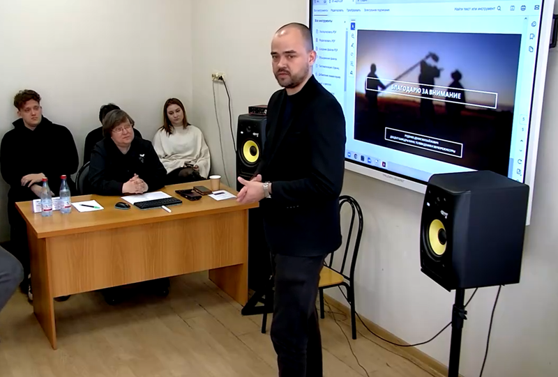Взаимодействие специалиста в процессе создания трансляций прямого эфира рассмотрел режиссер прямых трансляций «Старт ТВ» Паскаренко Олег Алексеевич. Обозначил особенности работы звукорежиссера во время прямых спортивных трансляций. Предложил форму сотрудничества в виде прохождения учебной практики на прямых трансляциях для музыкальных звукорежиссеров.