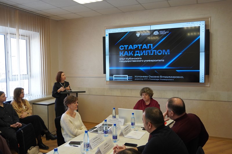 Об опыте реализации программы «Стартап как диплом» на базе ФГБОУ ВО «Кубанский государственный университет» выступила Копанева Оксана Владимировна, директор научно-технологического парка, руководитель программы «Стартап как диплом» ФГБОУ ВО «Кубанский государственный университет».