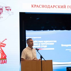В рамках этих встреч студенты и преподаватели КГИК общаются с экспертами по антитеррористической деятельности и отрабатывают основные алгоритмы действий при чрезвычайных ситуациях. Так, о важности традиционных ценностей и морально-нравственных ориентиров в борьбе против экстремизма и терроризма в современном обществе рассказали сотрудники координационного центра по вопросам формирования у молодежи активной гражданской позиции, предупреждения межнациональных и межконфессиональных конфликтов, противодействия идеологии терроризма и профилактики экстремизма Кубанского государственного университета Андрей Ерок и Альберт Якуба. Эксперты напомнили студентам о важности сохранения традиционных ценностей и активной гражданской позиции. В рамках этих встреч эксперты также освещали вопросы противодействия вербовке и мошенничеству в социальных сетях.