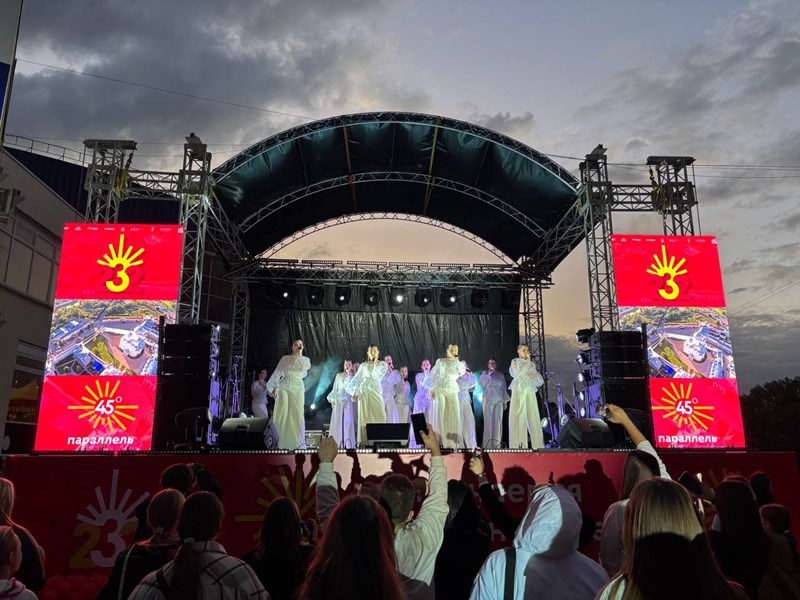 Эстрадный хор Краснодарского государственного института культуры принял участие в молодежном спортивно-творческом фестивале «45-я параллель», который прошел рядом с Дворцом спорта «Олимп» в день празднования 232-летия Краснодара.