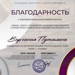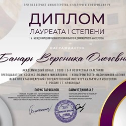 Студенты кафедры академического пения и оперной подготовки Краснодарского государственного института культуры стали лауреатами IV Международного конкурса вокального, ансамблевого и дирижерского мастерства "DE MUSIC AWARD".