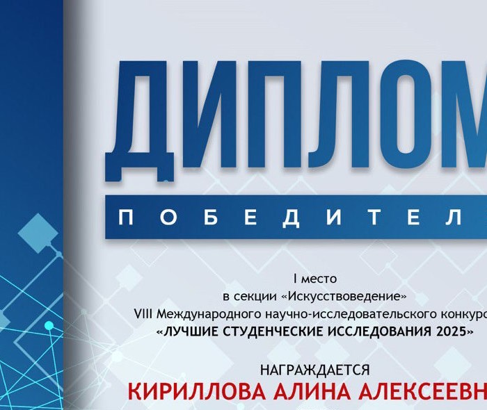 Студентка второго курса кафедры хореографии Краснодарского государственного института культуры Алина Кириллова стала победителем восьмого Международного научно-исследовательского конкурса «Лучшие студенческие исследования 2025».