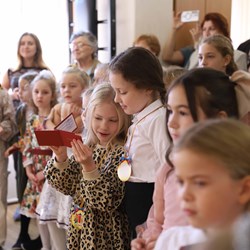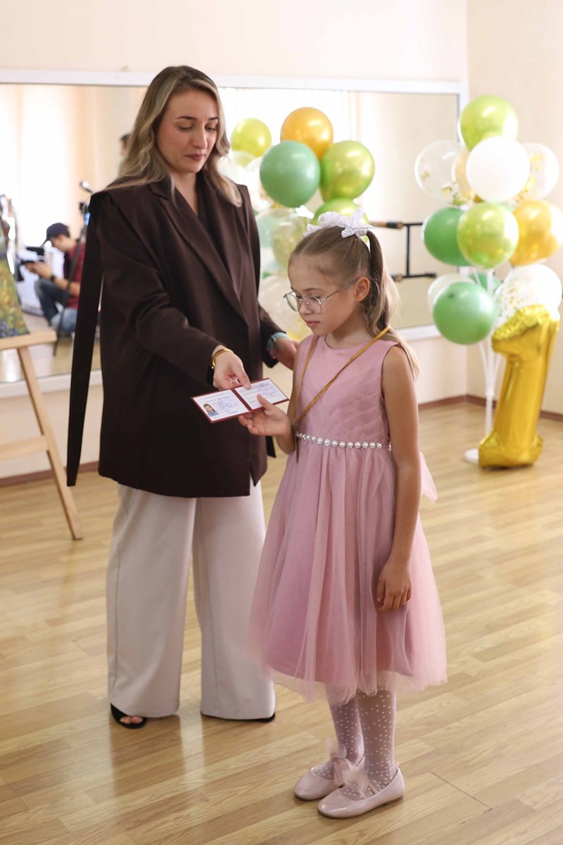 Заведующая отделением детских студий и предпрофессионального образования КГИК Анастасия Ситалова вручила будущим музыкантам, художникам и хореографам ученические билеты и поздравила ребят с началом непростого, но увлекательного творческого пути.