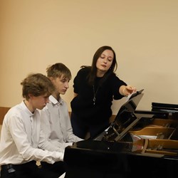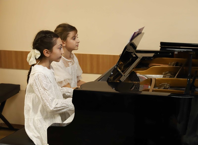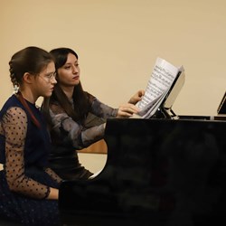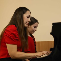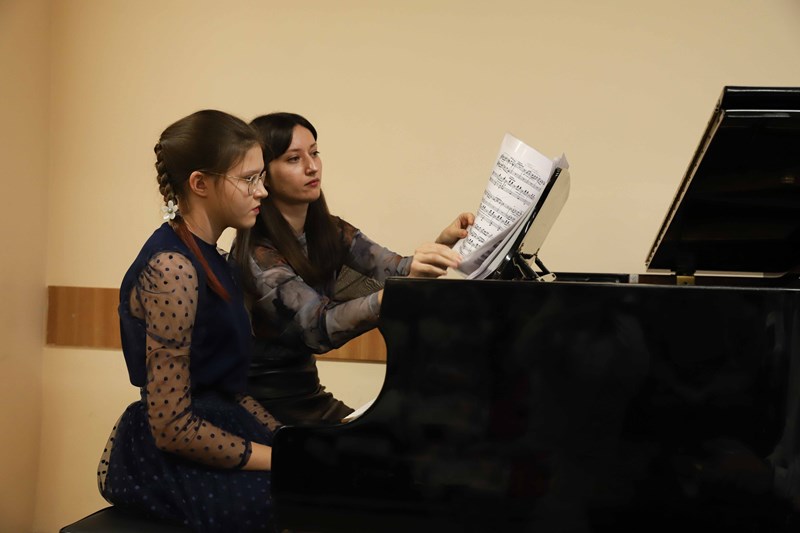 Ребята, обучающиеся на направлении «Фортепиано», подготовили разнообразную концертную программу и выступили перед своими родителями. Открыл концерт сводный хор воспитанников ДШИ КГИК. Юные музыканты выступали сольно и в составе дуэтов. Одним из таких дуэтов стал семейный тандем мамы и дочери: Ирина и Мария Калиниченко выступили вместе. Мария обучается в классе преподавателя Анны Тихой.