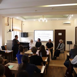 В рамках семинара участники смогли обсудить вопросы профессиональной деятельности артистов знаменитого коллектива. Гости ответили на вопросы преподавателей и студентов кафедры сольного и хорового народного пения и завершили свой рассказ совместным исполнением песни «Ах, судьба моя, судьба».