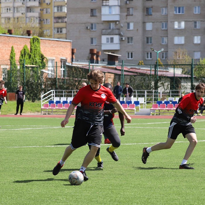 27.04.2026В Краснодарском государственном институте культуры сегодня, 27 апреля, прошел очередной товарищеский матч по футболу. Играли две сборные команды, в состав которых вошли студенты отделений высшего и среднего профессионального образования, учащиеся Музыкального кадетского корпуса имени Александра Невского и иностранные студенты КГИК.