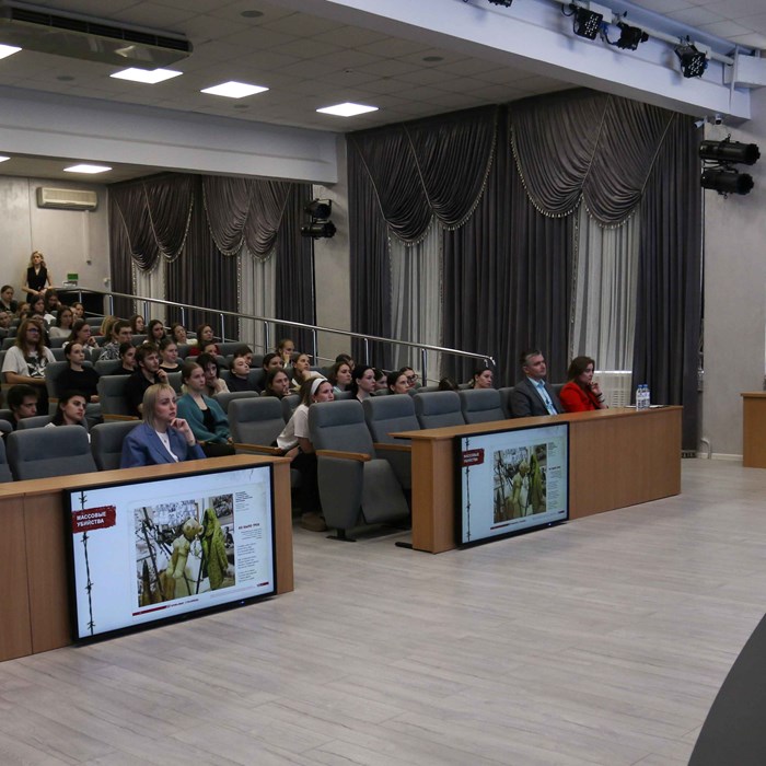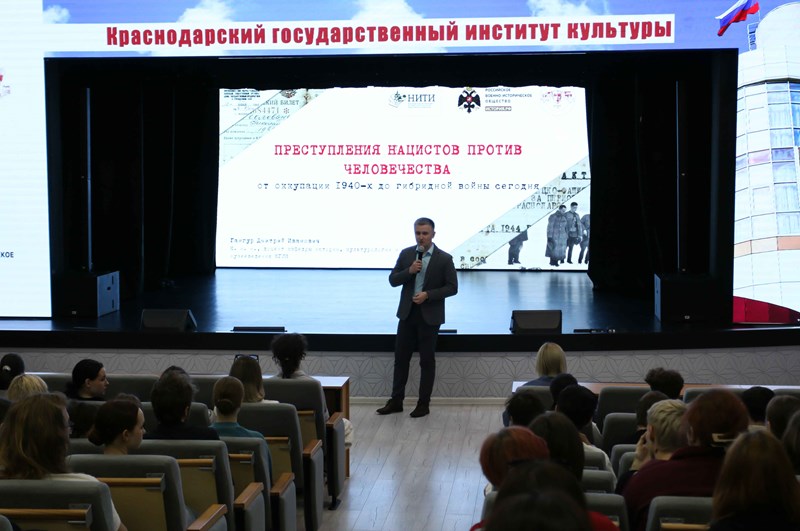 Об истории геноцида, его причинах, проявлениях и идеологических особенностях рассказал доцент кафедры истории, культурологии и музееведения КГИК, кандидат исторических наук Дмитрий Гангур. В своем выступлении Дмитрий Иванович раскрыл исторический и идеологический контекст геноцида, рассказал о том, как и почему люди принимали идеологию врага и становились коллаборационистами. Также подобные лекции и выставки прошли в учебных учреждениях в Армавире и в Сочи.