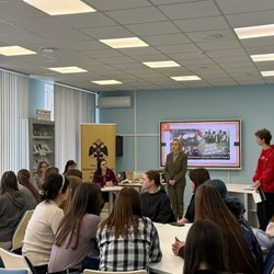 В музее «Девяти муз» КГИК для студентов колледжа прошла лекция об истории блокадного Ленинграда, которую провела заведующая кафедрой академического рисунка и живописи Елена Калашникова. Студенты более подробно узнали об истории снятия блокады, о жизни людей в осажденном городе и об их подвигах. В рамках лекции студенты колледжа также смогли увидеть работы художников, посвященные истории блокадного Ленинграда.