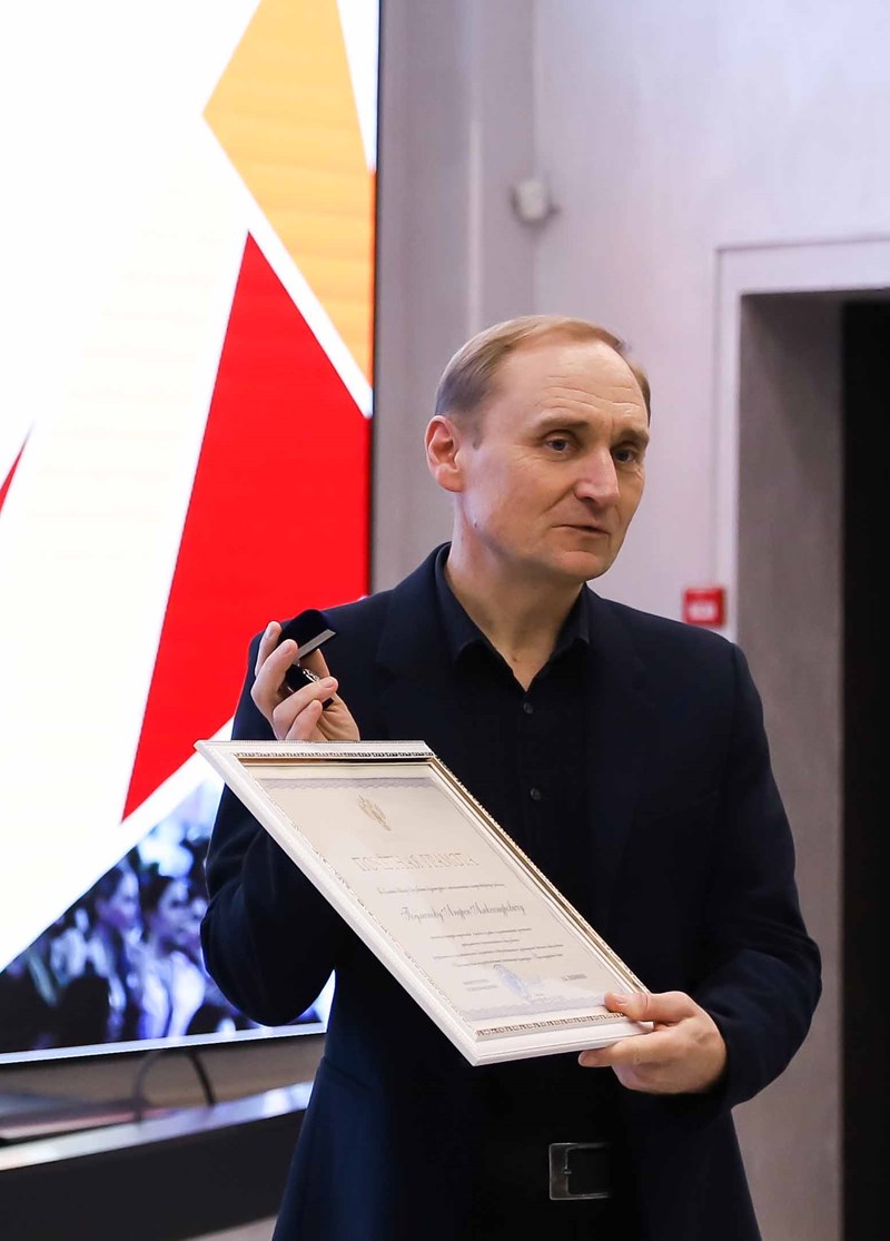 Помимо этого в рамках собрания ректор вручил ряд наград сотрудникам института. Так доцент кафедры педагогики, русского языка и гуманитарных дисциплин КГИК Андрей Подлеснов награжден Почетной грамотой Министерства культуры Российской Федерации за большой вклад в развитие культуры и многолетнюю плодотворную работу. Также руководитель пресс-службы КГИК, преподаватель кафедры педагогики, русского языка и гуманитарных дисциплин Наталья Созонова удостоена Благодарности Министра культуры Российской Федерации.