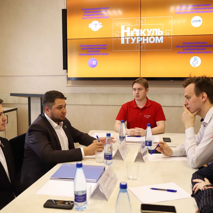 02.04.2026По инициативе Студенческого совета Краснодарского государственного института культуры в малом конференц-зале прошло заседание сообщества «Молодежь в культуре». Во встрече приняли участие директор театра «Старый парк», участник Молодежного совета при Министерстве культуры Российской Федерации Александр Алексеев, председатель Молодежного совета при министерстве культуры Краснодарского края и артист Театра Защитника Отечества города Краснодара Станислав Коновалов, заместитель руководителя регионального отделения Всероссийского объединения «Волонтеры культуры» Юлия Говорухина, а также председатель Студенческого совета КГИК Никита Лосевской и руководители секторов совета.