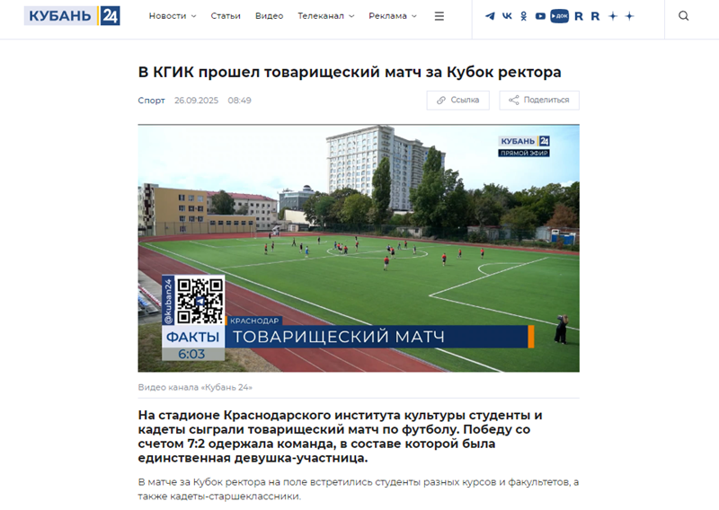 Кубань 24: "В КГИК прошел товарищеский матч за Кубок ректора"