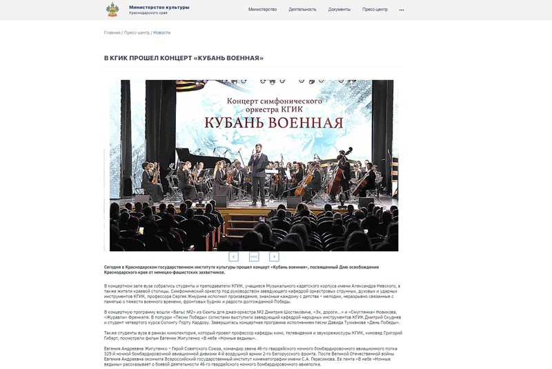 Министерство культуры Краснодарского края: "В КГИК ПРОШЕЛ КОНЦЕРТ «КУБАНЬ ВОЕННАЯ»"