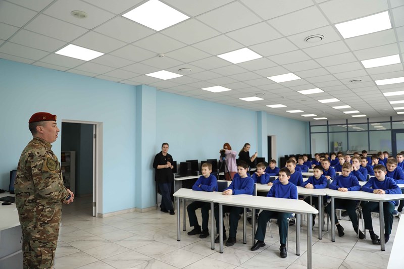Кадеты узнали об истории и специфике современной работы российского спецназа, об одном из самых сложных квалификационных испытаний для бойцов спецназа в России – сдаче на право ношения крапового берета. Также гость рассказал об основных способах и методах борьбы с вовлечением молодежи в противоправную деятельность, об участии спецназа в специальной военной операции и важности работы подобных подразделений внутри страны и на передовой.