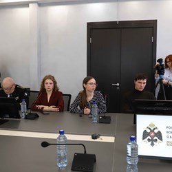 Сергей Семенович ответил на вопросы гостей об итогах работы отделений РВИО Краснодарского края в 2025 году, а также о деятельности в году текущем. На встрече присутствовали съемочные группы телерадиокомпании «Россия. Кубань», телеканала «Краснодар», телестудии «Дебют» Краснодарского института культуры, корреспонденты еженедельного издания «Югтаймс» и газеты «Институт на улице Победы» КГИК. Также мероприятие посетили исполнительный директор КРО РВИО Сергей Третьяков и представители местных отделений КРО РВИО.
