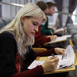 После инструктажа участники акции приступили к выполнению заданий диктанта. Из 25 вопросов диктанта 15 – с выбором ответа, еще 10 – с кратким самостоятельным ответом. Задания диктанта посвящены знаковым событиям и личностям в истории Великой Отечественной войны, несколько вопросов диктанта связаны с ключевыми событиями специальной военной операции.
