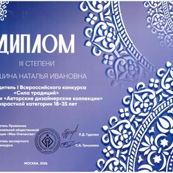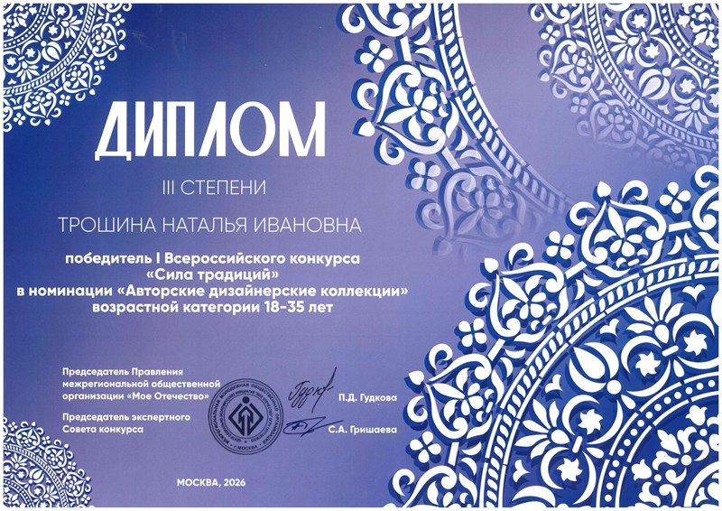 Студентка четвертого курса кафедры дизайна Краснодарского государственного института культуры Наталья Трошина стала призером Всероссийского конкурса «Сила традиций» в Москве.