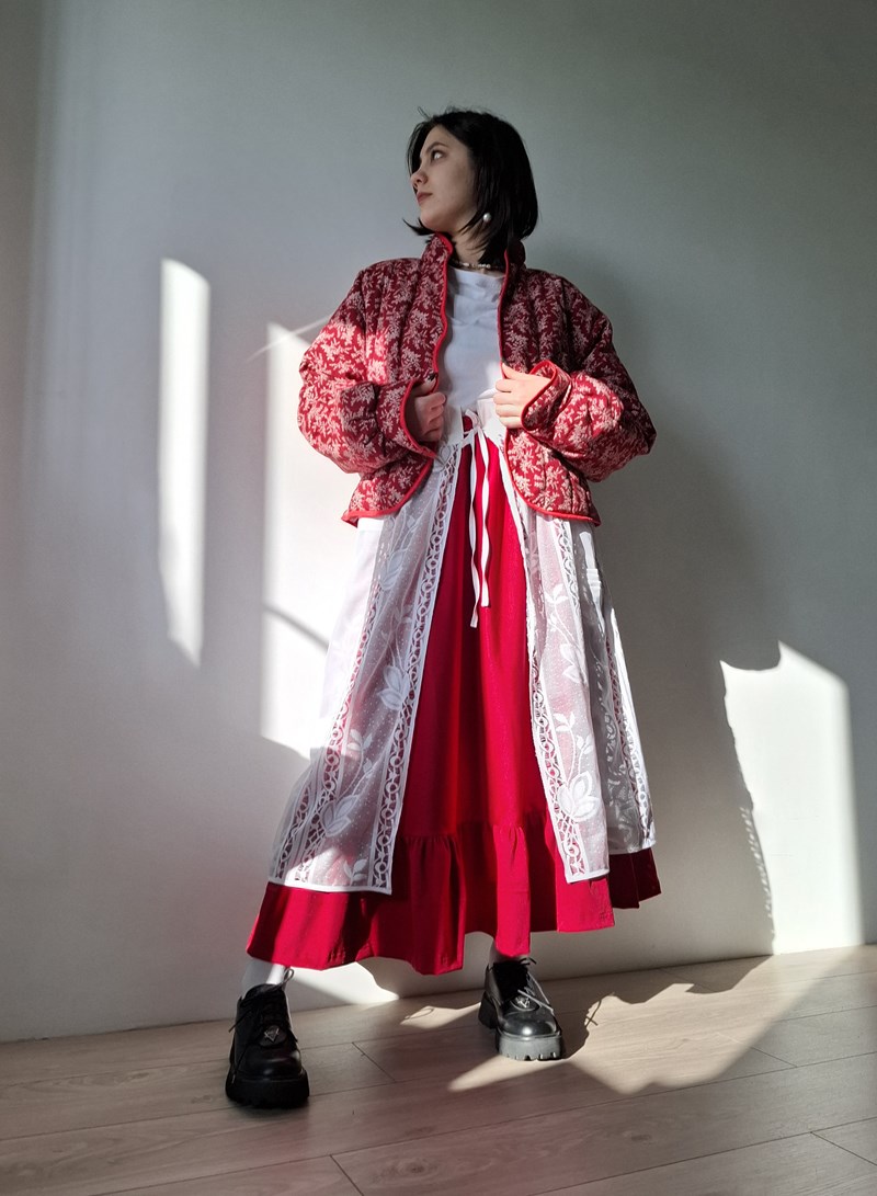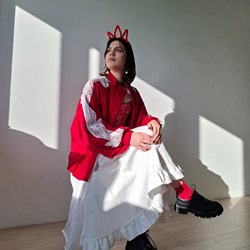 Коллекция вдохновлена русским костюмом и этническими традициями. Каждая вещь демонстрирует гармоничное сочетание традиций и современности. Проект выполнен под руководством преподавателя кафедры дизайна Галины Сергуновой.