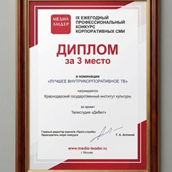 Телестудия «Дебют» Краснодарского государственного института культуры стала призером Международного девятого ежегодного профессионального конкурса корпоративных СМИ «Медиалидер». Коллектив студенческой телестудии вуза получил награду за третье место в номинации «Лучшее внутрикорпоративное ТВ»