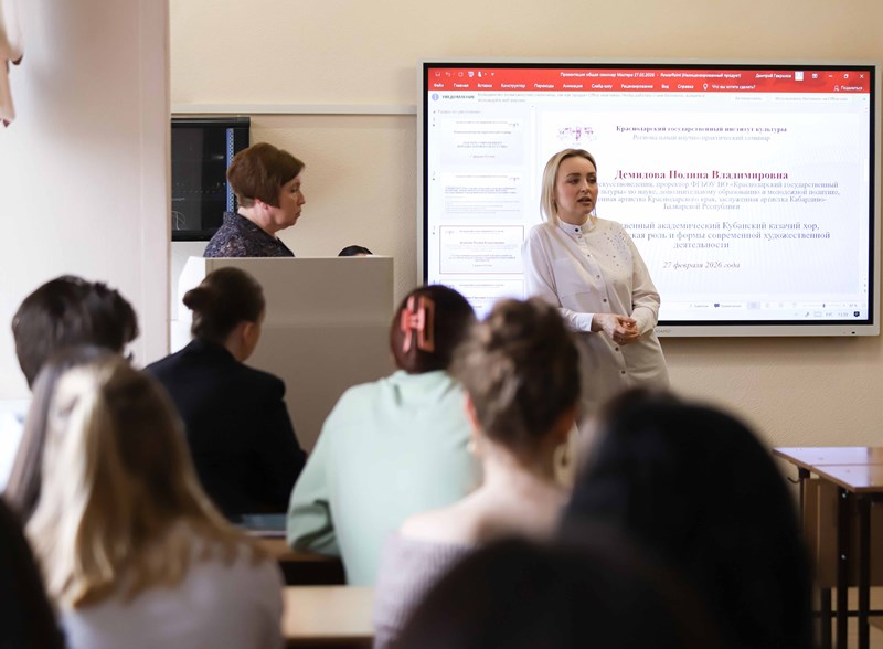 Ежегодно на факультете народной культуры проходит Региональный научно-методический семинар, посвященный обсуждению путей профессионального развития. В нем принимают участие выдающимися представители народно-хорового искусства. Семинар открыла проректор КГИК по науке, дополнительному образованию и молодежной политике Полина Демидова, которая многие годы являлась солисткой и хормейстером Кубанского казачьего хора. Также своим опытом работы в знаменитом коллективе с участниками семинара поделилась Ольга Коняхина, руководитель кафедры сольного и хорового народного пения. Главными гостями семинара стали заслуженный артист Российской Федерации, заслуженный артист Краснодарского края и Республики Крым Александр Дедов и заслуженная артистка Краснодарского края, заслуженная артистка Республики Татарстан, ассистент-стажер КГИК Елена Быкова, являвшаяся солисткой хора около пятнадцати лет. Модератором мероприятия и одним из докладчиков выступила доцент Светлана Жиганова.