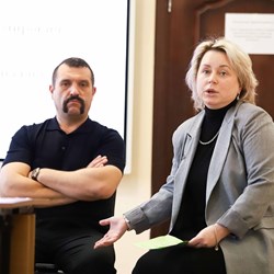 В рамках семинара участники смогли обсудить вопросы профессиональной деятельности артистов знаменитого коллектива. Гости ответили на вопросы преподавателей и студентов кафедры сольного и хорового народного пения и завершили свой рассказ совместным исполнением песни «Ах, судьба моя, судьба».