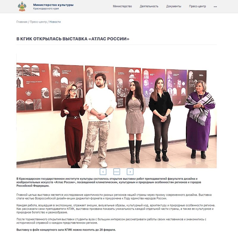 Министерство культуры Краснодарского края: "В КГИК ОТКРЫЛАСЬ ВЫСТАВКА «АТЛАС РОССИИ»"